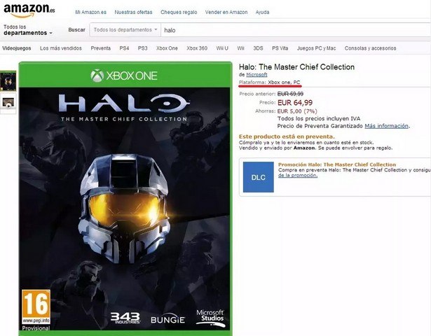 В каталоге испанского отделения онлайн-магазина Amazon было замечено издание Halo: The Master Chief Collection для PC.